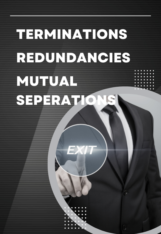 Let us guide or facilitate the process to ensure you have the maximum protection against a future claim. We can support you in all types of terminations and redundancies in addition to negotiated exits.