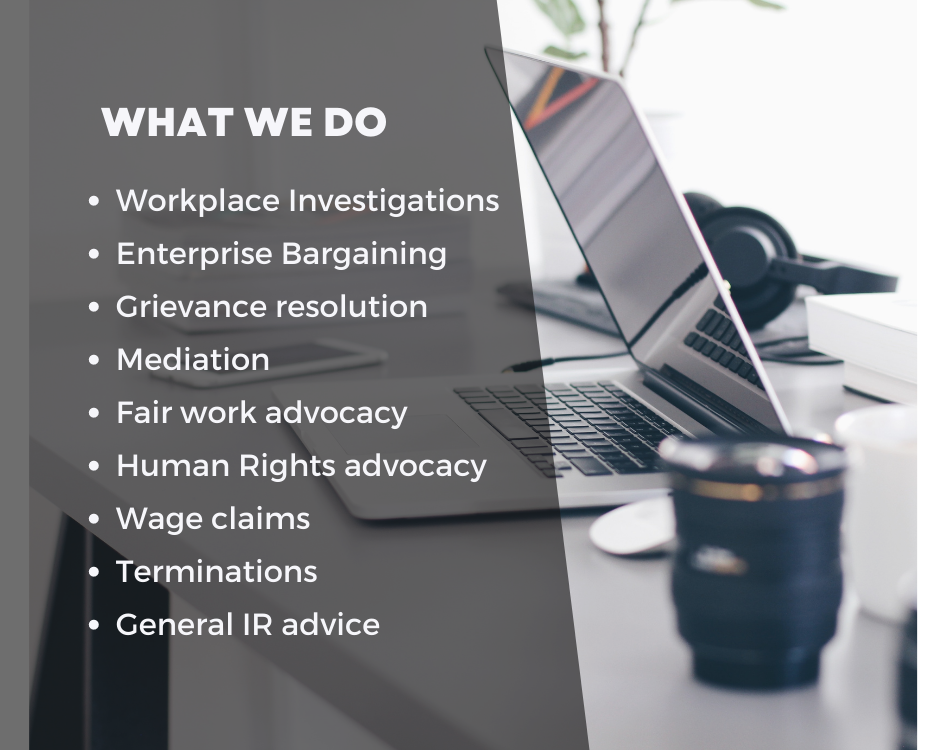 We understand the increasing complexity of industrial relations matters and the greater risk for potential litigation, and aim to provide peace of mind to Human Resources professionals and employment law practitioners through legally sound management of such matters to avoid risk of future litigation. We work closely with both employers directly and Employment law solicitors to support them in providing impartial advice and support with workplace investigations and mediations in addition to general support in the preparation and advocacy of Fair Work, Human Rights Commission and Work Cover claims.