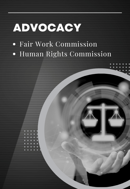 We understand the increasing complexity of industrial relations matters and the greater risk for potential litigation, and aim to provide peace of mind to Human Resources professionals and employment law practitioners through legally sound management of such matters to avoid risk of future litigation. We work closely with both employers directly and Employment law solicitors to support them in providing impartial advice and support with workplace investigations and mediations in addition to general support in the preparation and advocacy of Fair Work, Human Rights Commission and Work Cover claims.